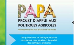 Le Projet d’Appui aux Politiques Agricoles (PAPA) est une initiative du Gouvernement du Sénégal financée par l’USAID-Sénégal dans le cadre de l’initiative «Feed The Future » et mise en œuvre pour la période 2015-2019 sous la coordination du Ministère de l’Agriculture et de l’Equipement Rural (MAER).Ce projet vise la création d’un système plus performant de formulation, de mise en œuvre et de suivi évaluation des politiques agricoles qui repose sur (i) Un réseau local d’expertises en Analyse des Politiques Agricoles, (ii) une plateforme inclusive de dialogue sur les politiques agricoles et (iii) un système informatisé de S&E et gestion des connaissances.La bonne qualité des politiques agricoles dépend entre autres d’une implication des acteurs concernés, notamment Organisations des Producteurs, le secteur privé, les Organisations de la Société Civile, etc. dans tout le processus de l’élaboration à l’évaluation des politiques, en passant par la mise en œuvre, d’où la nécessité d’avoir un cadre qui permettre de faciliter cette implication. A cet effet, le PAPA a réalisé un diagnostic des plateformes de dialogue sur les politiques agricoles existantes afin de capitaliser les expériences et de décider de la création ou non d’un nouveau cadre. (Voir Document ci-dessous pour la suite)